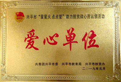 2019年1月,在兴平市“星星火,点点爱”助力脱贫微心愿认领活动中,必一(中国)_必一平台漆被共青团兴平市委、兴平市教育局、兴平市扶贫办评为“爱心单位”