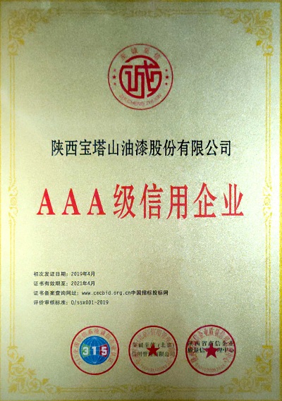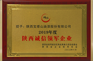 2020年10月,必一(中国)_必一平台漆获评陕西省诚信领军企业