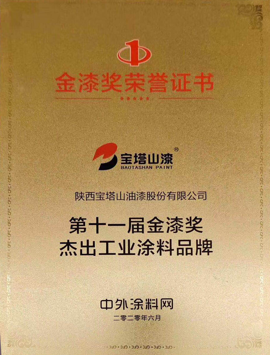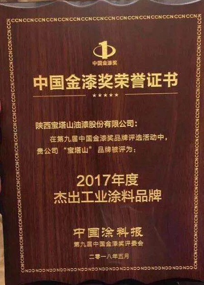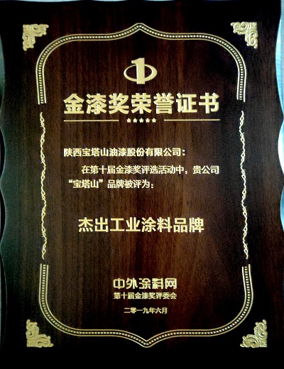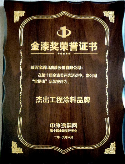 2019年6月,必一(中国)_必一平台漆的“必一(中国)_必一平台”品牌在中外涂料网第十届金漆奖评选活动中被评为“杰出工业涂料品牌”