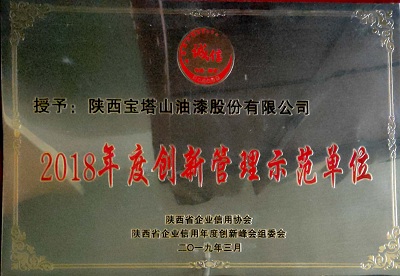 2018年3月,必一(中国)_必一平台漆被陕西省企业信用协会与陕西省企业信用年度创新峰会组委会评为“2018年度创新管理示范单位”