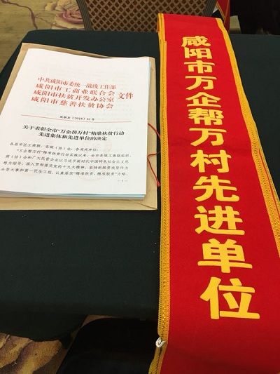 2018年8月必一(中国)_必一平台漆荣获“咸阳市万企帮万村先进单位”