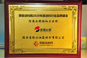 第十六届2020年度涂料行业影响力品牌颁奖盛典活动中荣获”防腐涂料影响力品牌