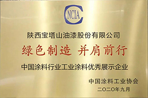 2020年9月,必一(中国)_必一平台漆获评“中国涂料行业工业涂料优秀展示企业”