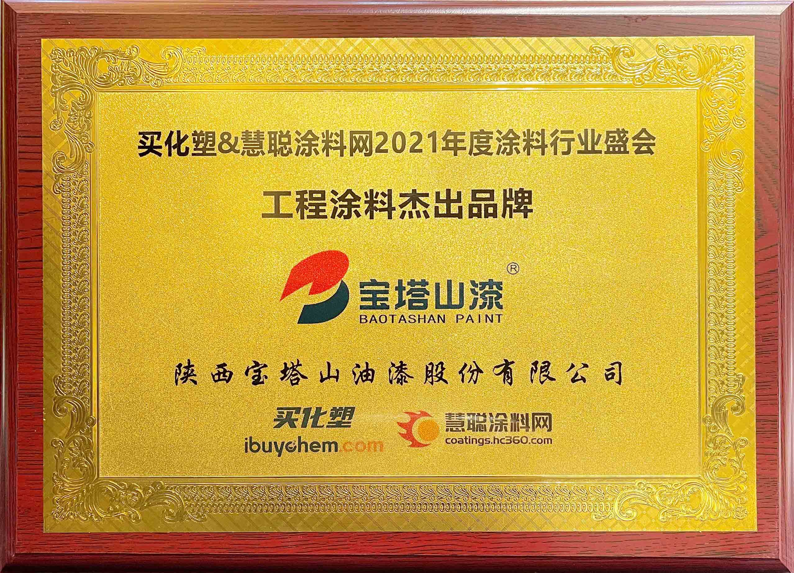 2021年6月26日,必一(中国)_必一平台漆荣获2021 年度“工程涂料杰出品牌”