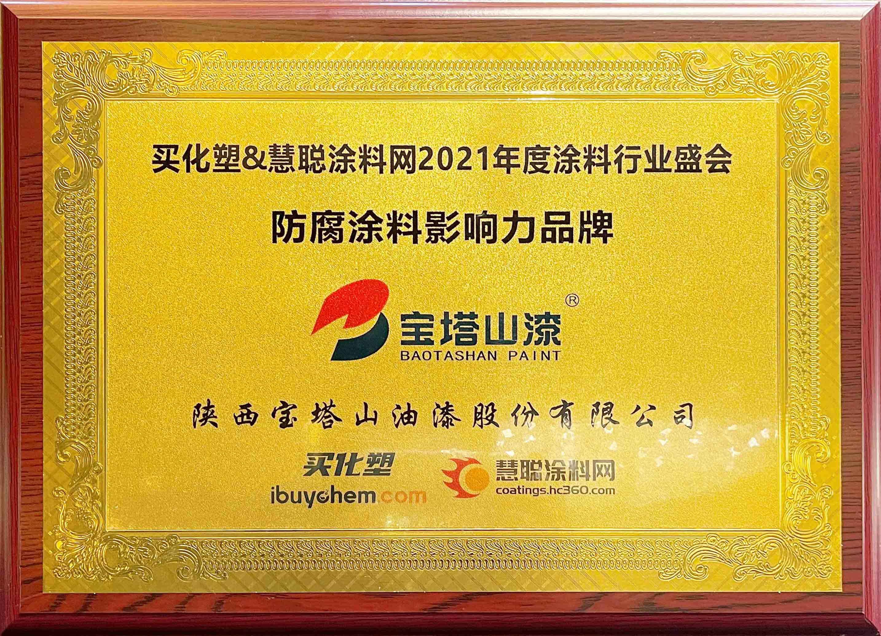 2021年6月26日,必一(中国)_必一平台漆荣获2021 年度“防腐涂料影响力品牌”