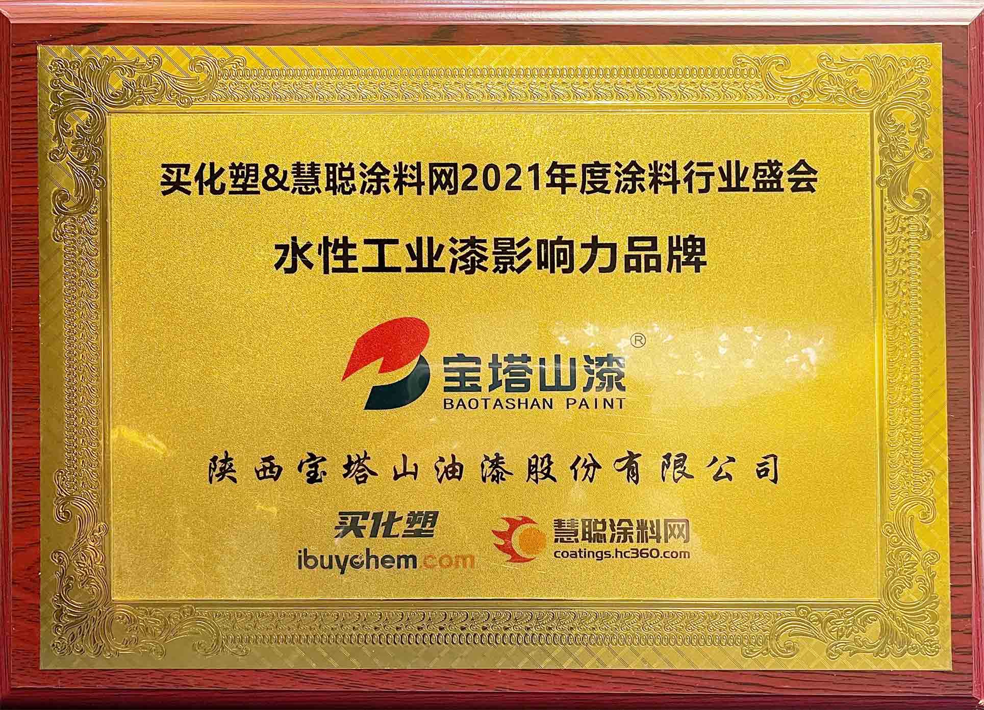 2021年6月26日,必一(中国)_必一平台漆荣获2021 年度“水性工业漆影响力品牌 ”