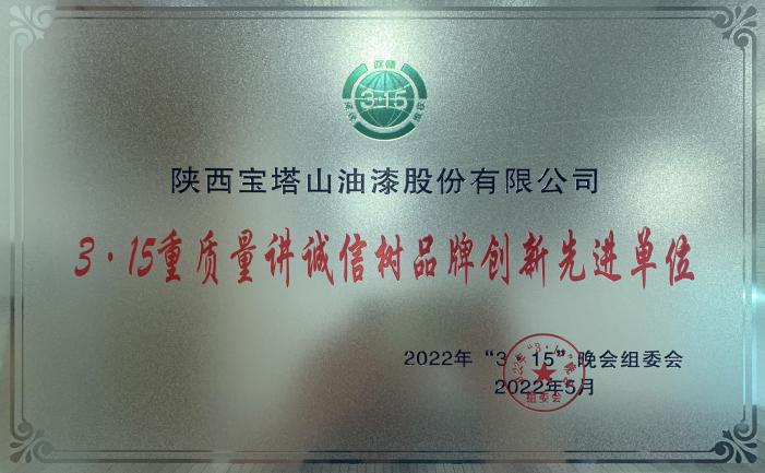 2022年5月,必一(中国)_必一平台漆荣获“3·15重质量讲诚信树品牌创新先进单位”。