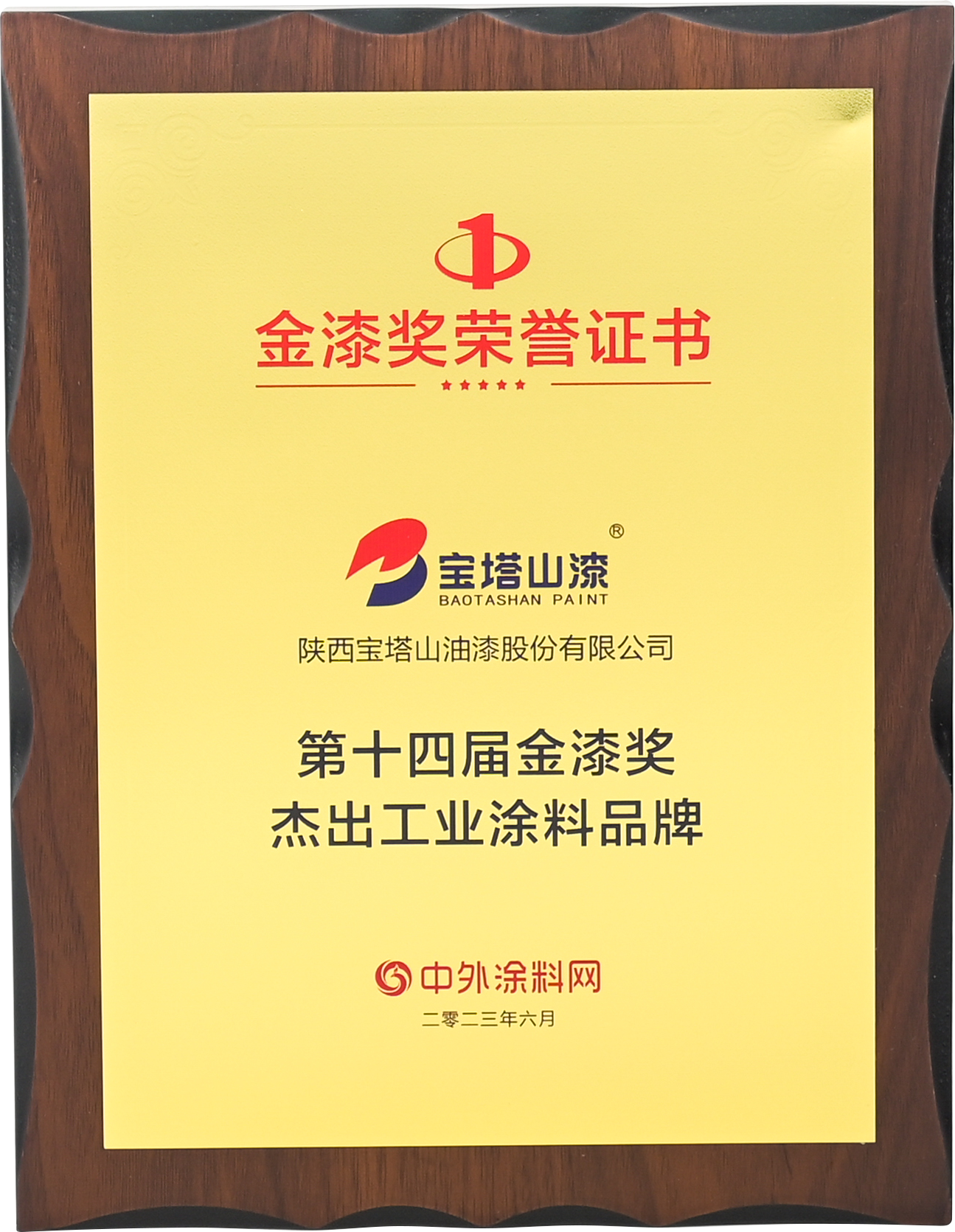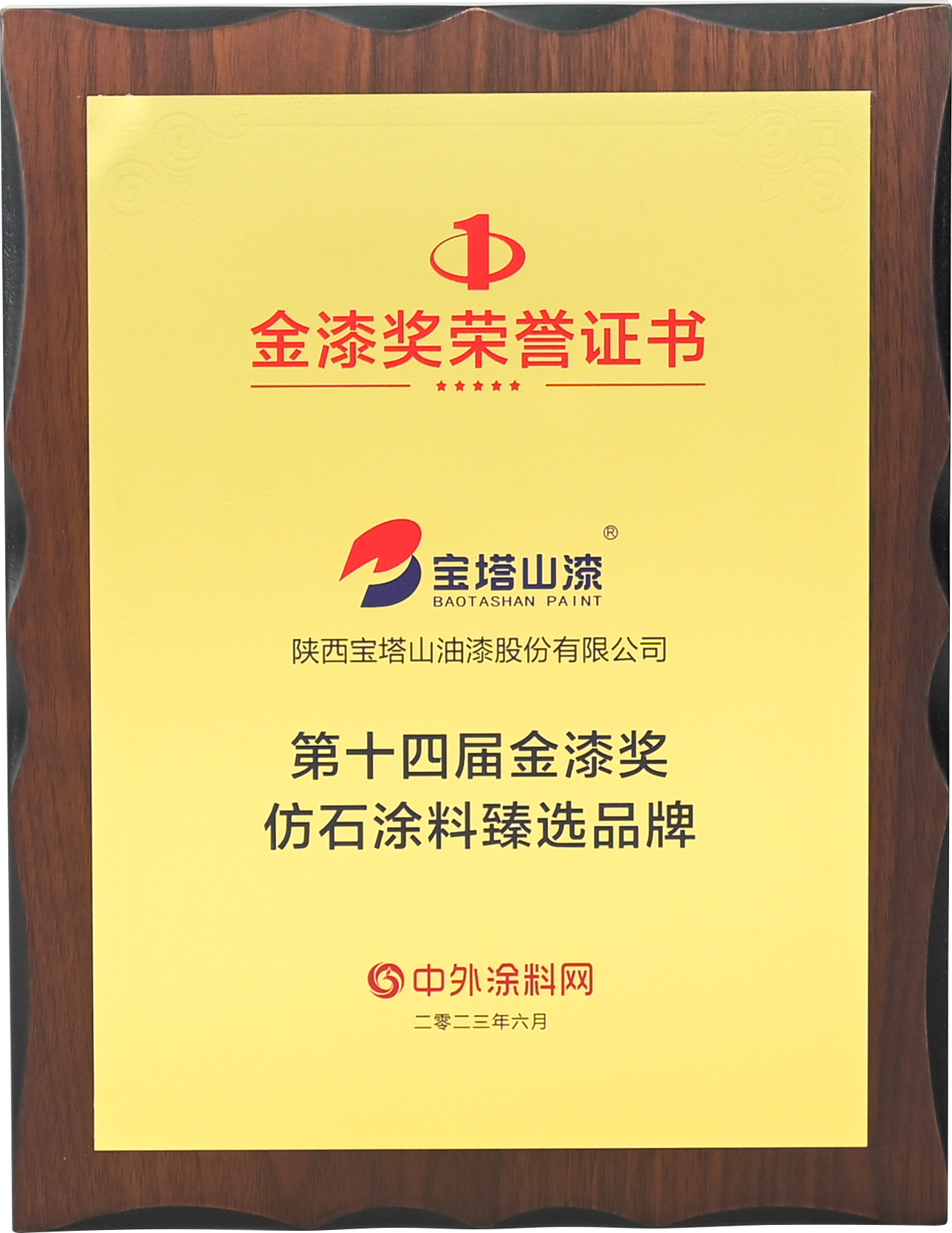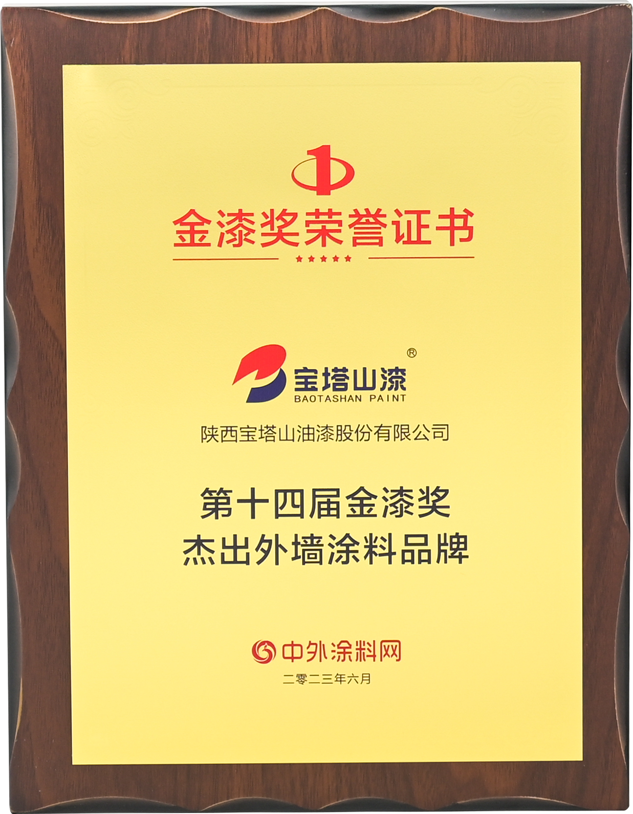 2023年6月,必一(中国)_必一平台漆荣获“第十四届金漆奖杰出外墙涂料品牌”。