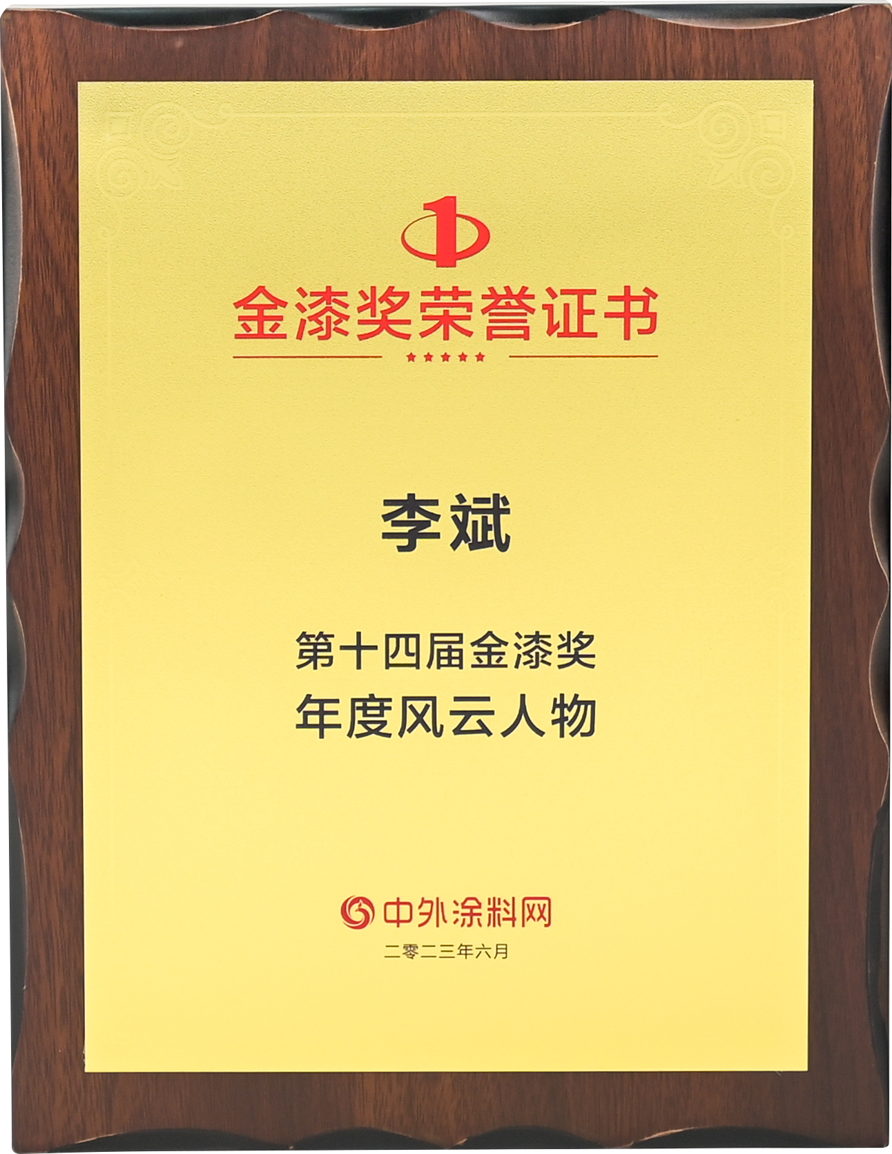 2023年6月,必一(中国)_必一平台漆李斌同志在中外涂料网第十四届金漆奖评选活动中被评为“年度风云人物”。