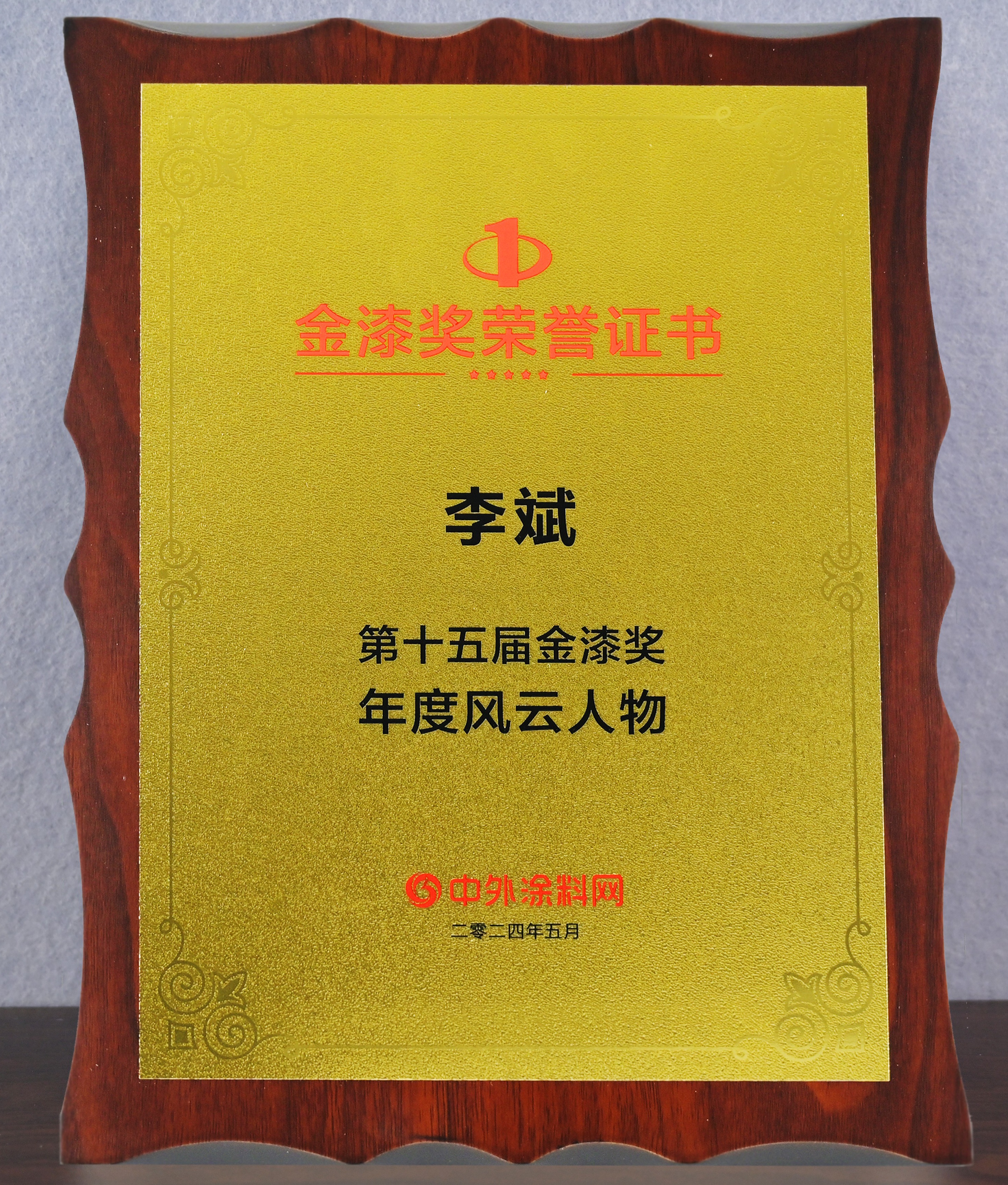 2024年5月,必一(中国)_必一平台漆李斌同志在中外涂料网第十五届金漆奖评选活动中被评为“年度风云人物”。